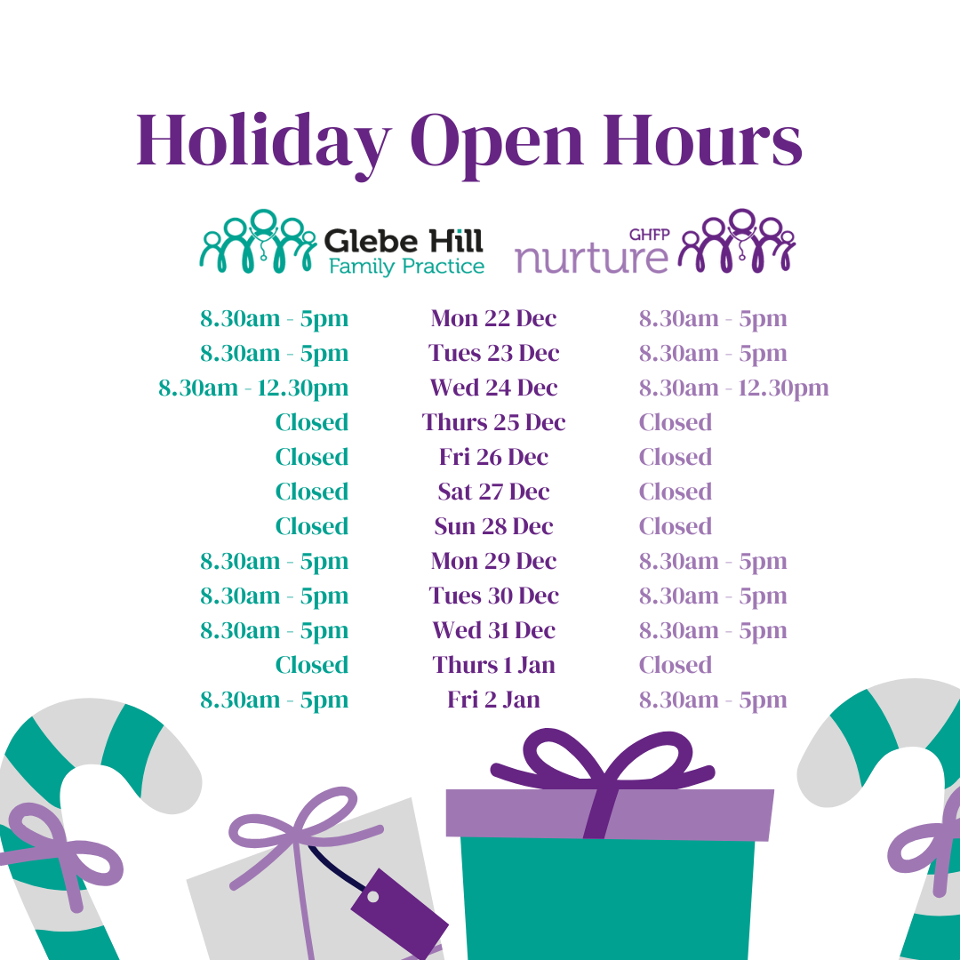 Some of the GPs who practice at Glebe Hill Family Practice and GHFP Nurture will be away over Christmas and the New Year.